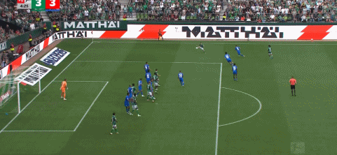 第43分钟,姆班古拉造点,施密德操刀点射命中,不莱梅1-2